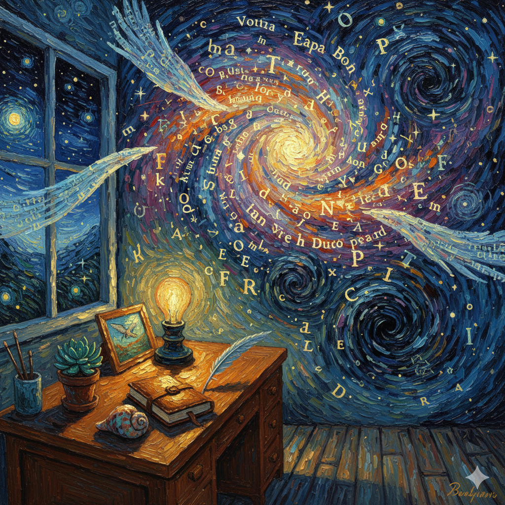 Cuvintele nu sunt doar litere... alăturate, sudate sau contopite. Sunt visuri și curaj! Sunt forță și voință! Sunt inimi care bat, suflete care vibrează de emoție. Fâlfâiri de aripi care străbat furtuni și împrăștie pace. Nu știu ce este acela timp. Îl sfidează neîncetat. Cern anotimp după anotimp. Iar pentru ele, lumea este Doar o scenă, pe care susțin reprezentații artistice pline de frumusețe, atât diurne, cât și nocturne. Cuvintele ... sunt o întreagă galaxie! Fiecare literă este o stea. Fiecare sintagmă este o supernovă. Fiecare frază este o gaură neagră.