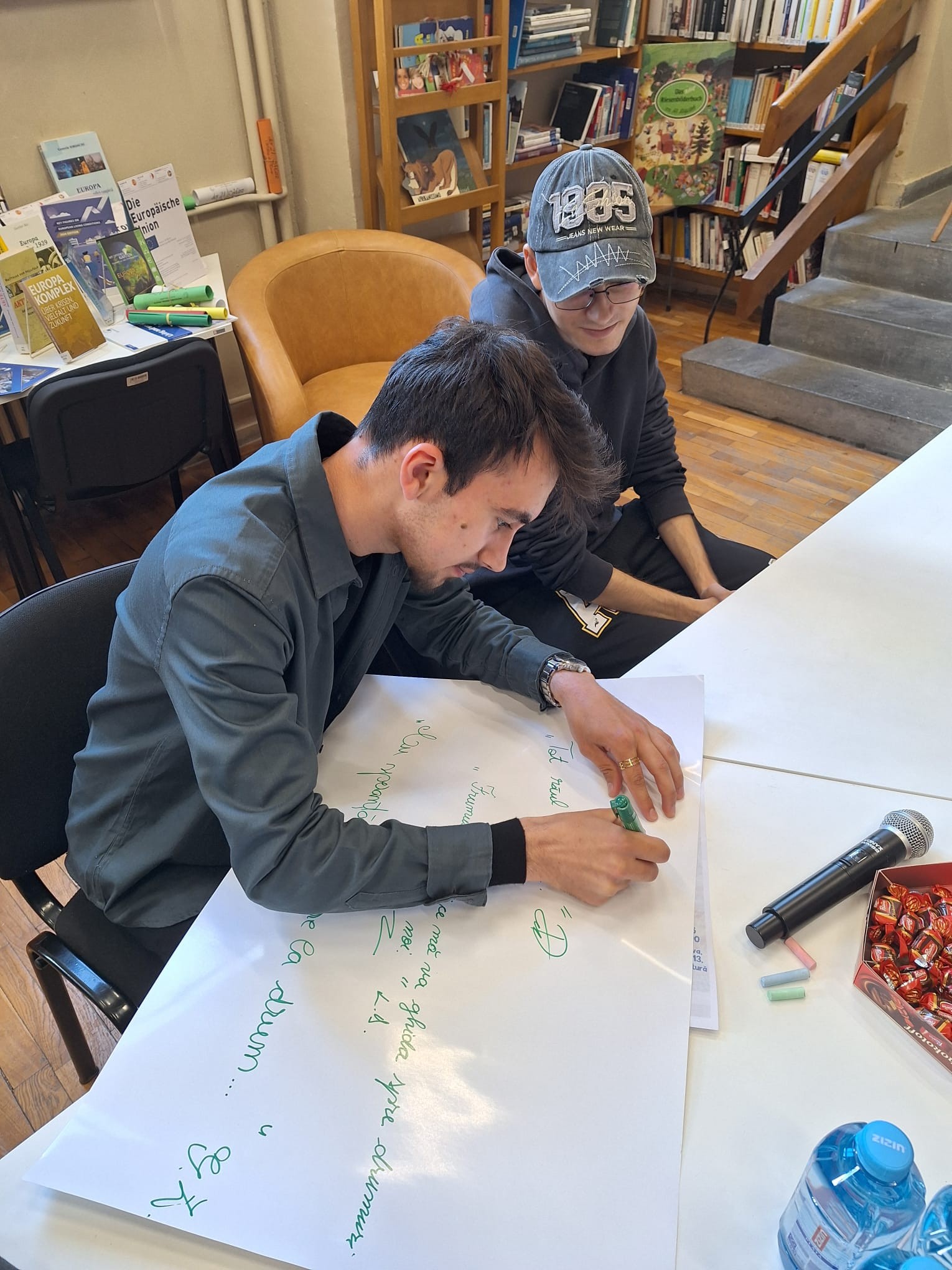 14 mai 2025 𝓢𝓬𝓻𝓲𝓮 𝓬𝓻𝓮𝓪𝓽𝓲𝓿, 𝓼𝓬𝓻𝓲𝓮 𝓫𝓲𝓷𝓮, 𝓻𝓪𝓶𝓪𝓲 𝓵𝓲𝓫𝓮𝓻 Andrei Ludoșan, psiholog, psihoterapeut și autor al „basmului animist, psihologic, filosofic și simbolic, inspirat din folclorul balcanic, IONON - Basmele Străvechiului Pământ”, le-a vorbit studenților prezenți ieri în Sala de lectură Facultatea de Litere - Universitatea din Craiova despre diferite tehnici psihologice prin își pot îmbunătăți scrisul, una dintre ele fiind accesarea rapidă a stării de implicare completă în actul creației, stare a conștiinței numită 𝐟𝐥𝐮𝐱 („flow”, concept dezvoltat de psihologul Mihaly Csikszentmihalyi). Mulțumim dlui Andrei Ludoșan pentru toate informațiile oferite și dnei lect. univ dr. Ariana Bălașa care a făcut posibil acest eveniment. 14 mai 2025 📖𝓑𝓵𝓸𝓰 - 𝓥𝓸𝓬𝓮𝓪 𝓵𝓲𝓽𝓮𝓻𝓪𝓻ă 𝓪 𝓬𝓸𝓶𝓾𝓷𝓲𝓽ăț𝓲𝓲 𝓤𝓒𝓿. 🗣️🖋️Am pornit cercul literar V͟o͟c͟e͟a͟ d͟i͟n͟ p͟a͟g͟i͟n͟ă͟ de la premisa că emoțiile unei întâlniri cu talentul și sensibilitatea inspiră și motivează. Întâlnirea de astăzi cu frumoșii și talentații noștri tineri colaboratori ne-a convins că am avut dreptate. A fost minunat pe tărâmul imaginației și creativității. ✨ Așteptăm cu nerăbdare următoarea întâlnire, la care să participe și ceilalți colaboratori ai noștri, precum și cei care nu și-au făcut curaj până acum. Geovana Albertina, Laura Maria, Alin Valentin, Andreea Bușe 9 mai 2025 🌳𝐒𝐚𝐩𝐭𝐚𝐦𝐚𝐧𝐚 𝐯𝐞𝐫𝐝𝐞 ☘️ Biblioteca Facultăților de Drept și Științe Sociale a primit vizita elevilor de la Liceul Traian Vuia Craiova, însoțiți de dna prof. Alina Oprea. Elevilor le-a fost prezentată biblioteca, iar dna conf. univ.dr. Mădălina Nica le-a vorbit despre admiterea la facultate și importanța studiului în domeniul dreptului. 𝗭𝗶𝘂𝗮 𝗘𝘂𝗿𝗼𝗽𝗲𝗶 - 9️⃣Mai Anul acesta, Ziua Europei este una specială, deoarece marchează 75 de ani de la „Declarația Schuman”, propunerea istorică făcută în 1950 de Robert Schuman, ministrul francez al afacerilor externe. 🎥Cu această ocazie, vă invităm la un film documentar despre Europa, „Europe is dead, long live Europe”, la Universität Craiova Deutscher Lesesaal Partner Goethe-Institut (Sala Germană de Lectură), clădirea centrală a Universității din Craiova, sala 168, 🕙1️⃣0️⃣.0️⃣0️⃣. Expoziție de carte și materiale informative de #ZiuaEuropei la Universität Craiova Deutscher Lesesaal Partner Goethe-Institut.