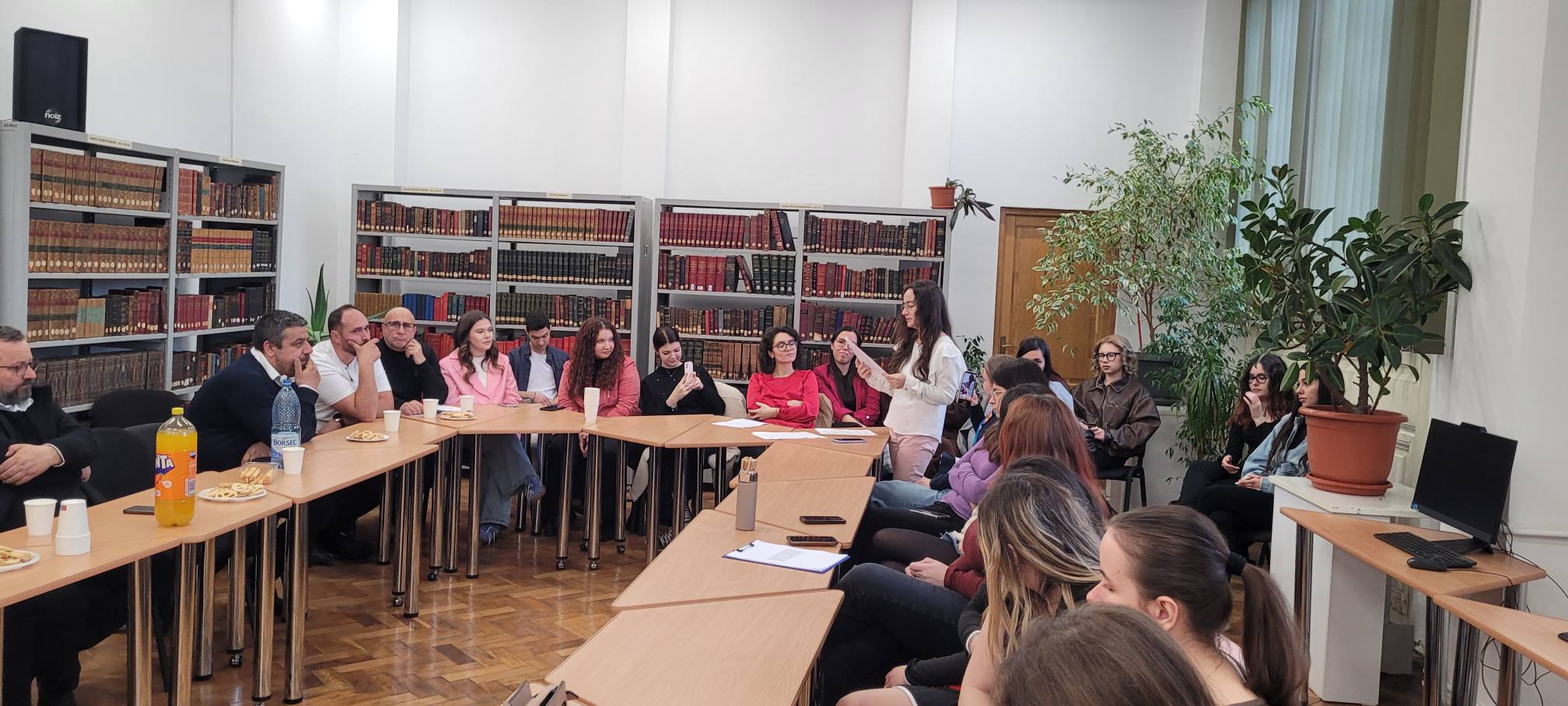 26 martie 2026 Activități în Bibliotecă 📷Dl prof. univ. dr. George Brătulescu le-a prezentat astăzi studenților, în cadrul Sălii de lectură a Departamentului de Chimie - Facultatea de Stiinte - Universitatea din Craiova, modalități și tehnici de căutare și documentare științifică atât în bazele de date (Chemical Abstract), cât și în revistele de specialitate în format fizic. 25 martie 2026 Activități în Bibliotecă 📷 Miercuri, 25 martie a.c, Asociatia CSR Nest a organizat atelierul pentru tineri, cu tema „Sustenabilitatea în afaceri”, în cadrul unui proiect Erasmus +. Evenimentul a fost găzduit de Sala de lectură a Facultății de Litere (368), Universitatea din Craiova. În timpul desfășurării atelierului, participanții, în majoritate studenți ai Facultății de Științe Sociale, au interacționat, prin videoconferință, cu tineri din Franța și Lituania, țări partenere ale proiectului. De asemenea, participanții au analizat diverse afaceri, în relație cu dilema costuri-eficiență, problema poluării, provocările digitalizării sau ale avansului tehnologic accelerat. Ca activitate practică, participanții au construit strategii și planuri de sustenabilitate.
